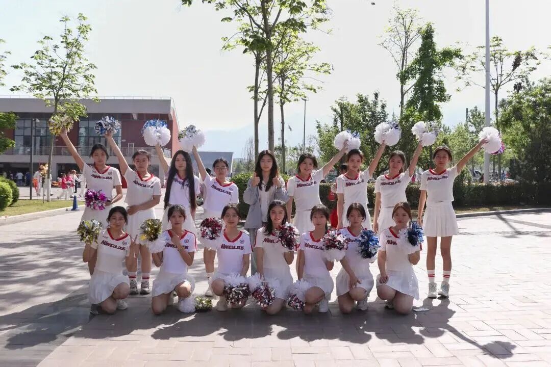 的表演正式拉开序幕。学子们手持彩穗花球意气风发、阔步登场,尽显蓬勃朝气;双龙威风盘旋、气势昂扬,与青春身姿交相辉映。